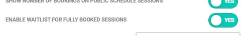 - Enable waitlist for fully booked sessions: Allow members to enter a waiting list for fully booked sessions (see below).