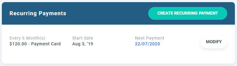 You can create a new recurring payment by clicking the "Create Recurring Payment" button.