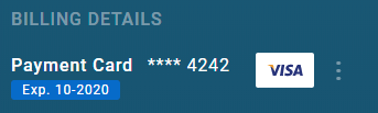 At the bottom of the sidebar you'll find the payment method on file. If a payment method has already been added, basic details will be shown (card type, expiration and last 4 digits), and it can be updated or removed by click on the settings icon on the right side of it.