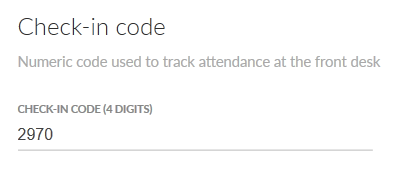 The check-in code allows quick check-in for members at the front-desk. If you don't enter a value, one will be generated automatically. You can also change the number of digits in the attendance settings.