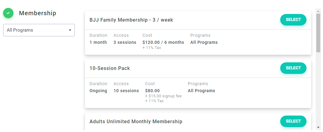 Members can pick which membership to join during sign-up. They can add a payment card and pay for it on the next step.
