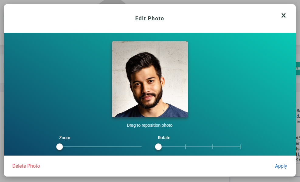 After uploading a photo, you will be given the option to adjust the photo before submitting, such as moving the focus, zooming in / out and rotating.