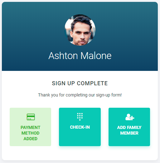 After completing the sign-up form, the member is presented with three options -