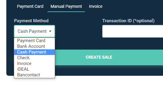 If you are accepting payments offline - cash, checks - or through a 3rd party system, you can use the "manual payment" option to create the sale without processing a payment directly.