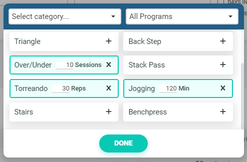 Once selecting a skill, you can set the exact number of sessions / reps / minutes required for promotion.
