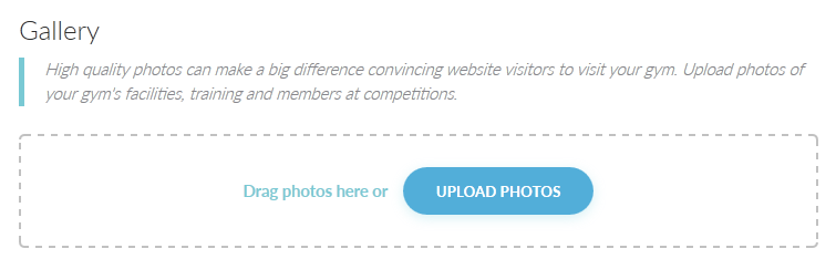 Webサイトのギャラリーを使用すると、Webサイトの訪問者にジムでのトレーニングの様子を伝えることができます。ギャラリーの設定では、施設の写真、主催したイベントの写真、大会に出場しているメンバー会員の写真などを追加でアップロードすることができます。